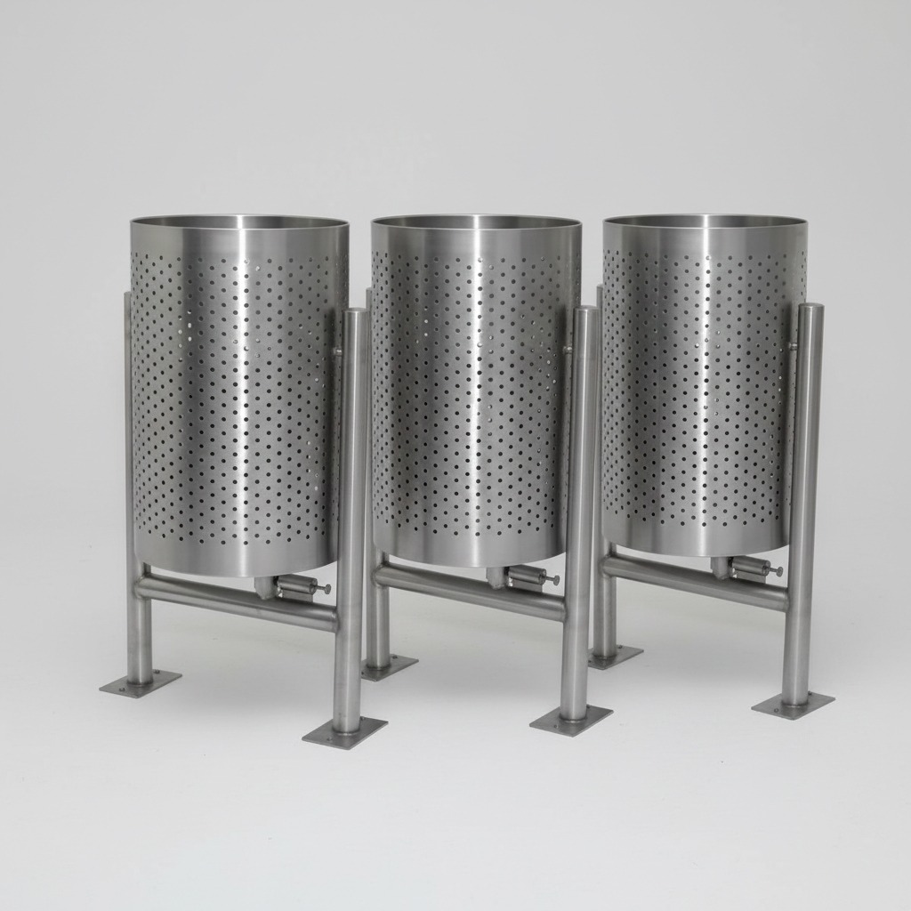 Gestiona los residuos con elegancia y resistencia utilizando nuestras Canecas de Basura en Acero Inoxidable. Fabricadas con materiales de grado industrial, estas canecas presentan un cuerpo perforado que favorece la ventilación y un acabado pulido que resiste la corrosión en exteriores. Su diseño incluye un sistema basculante integrado en un soporte lateral robusto, lo que facilita el vaciado rápido y optimiza las tareas de mantenimiento. Las bases de anclaje cuadradas permiten una fijación permanente al suelo, garantizando estabilidad total en zonas públicas o industriales de alta circulación.