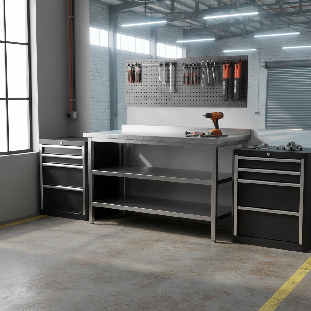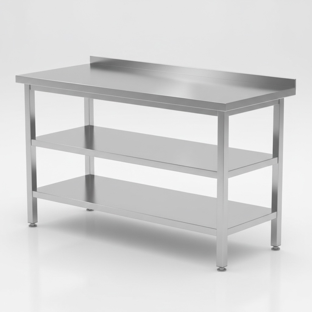 Optimiza la higiene y funcionalidad de tu espacio de trabajo con nuestro Mesón en Acero Inoxidable de grado industrial. Diseñado bajo estrictos estándares de calidad, este mesón ofrece una superficie lisa, no porosa y altamente resistente a la corrosión, ácidos y variaciones térmicas. Su estructura reforzada incluye entrepaños ajustables que maximizan el almacenamiento, mientras que el salpicadero posterior evita filtraciones de líquidos hacia la pared. Es la solución definitiva para entornos que exigen limpieza profunda y una vida útil prolongada bajo uso intensivo.