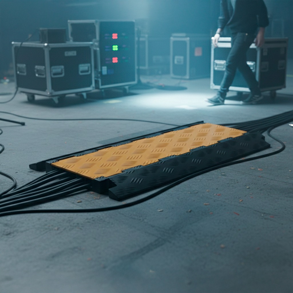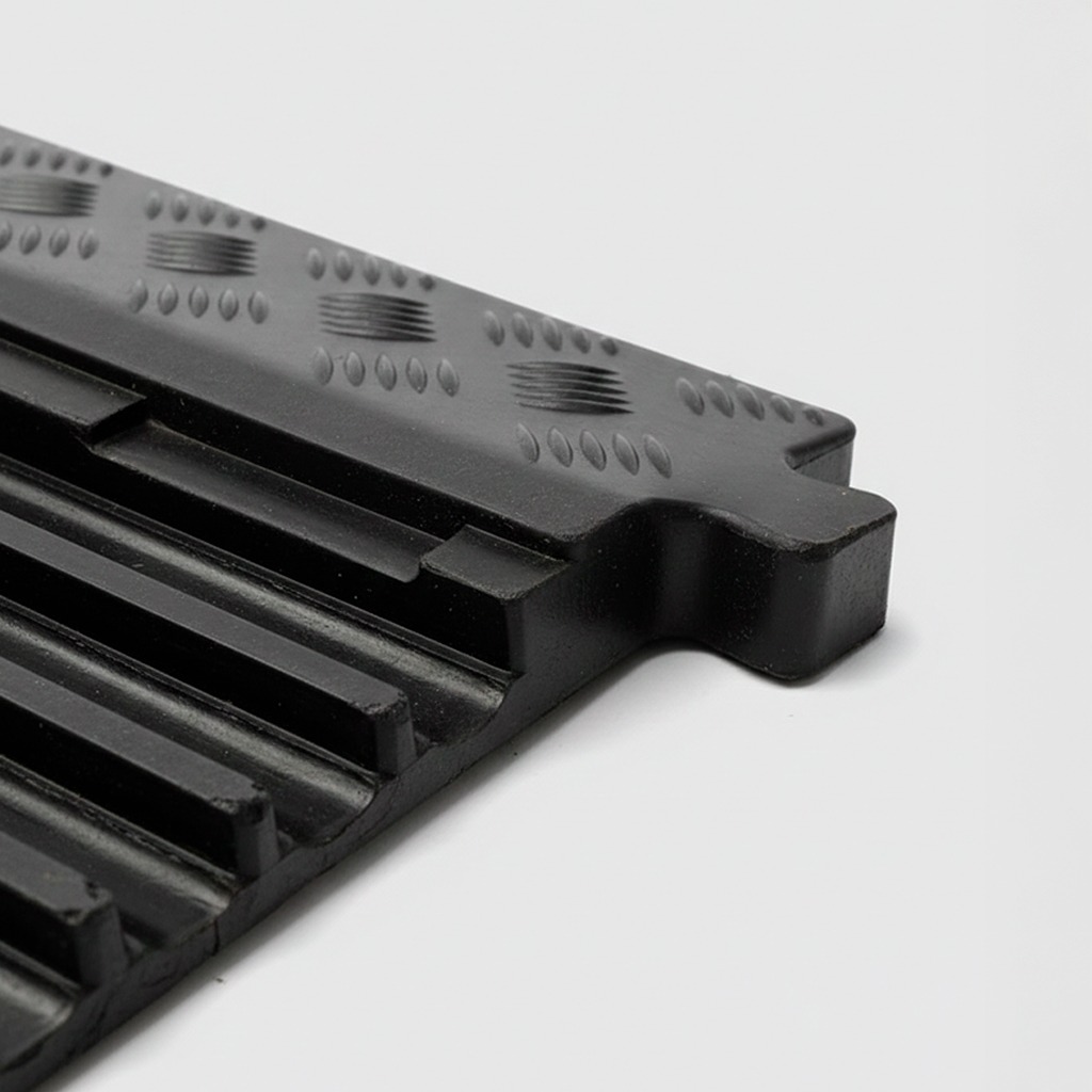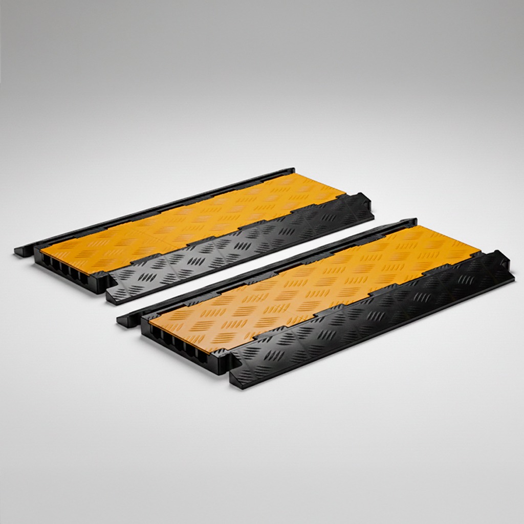 Optimice la gestión de cableado a gran escala con nuestro Protector de Cables de 5 Canales, la solución más robusta para la seguridad industrial. Este sistema cuenta con cinco carriles independientes que permiten separar cables de potencia, datos y mangueras, evitando interferencias y daños por aplastamiento. Fabricado con una base de caucho virgen vulcanizado y una tapa de polipropileno de alta visibilidad, soporta el paso constante de vehículos pesados y maquinaria. Su tapa abisagrada facilita el acceso rápido para mantenimiento, mientras que su textura superficial tipo diamante garantiza un paso peatonal seguro y antideslizante.